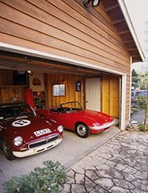 このガレージは、オリンピック製の半透明の着色塗料を使用しました。その他、オスモワックス等もお奨めです。 |