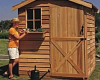 「シダーシェッド」はパネル状になっているため梱包が大きく(カバナで、たて2m、よこ1.2m、高さ1m)、大型のトラックで配送します。したがって道幅が2.2m以下のところへは配送できない場合もございます。